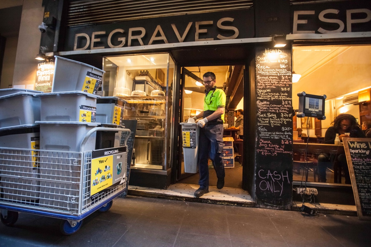 As an alternative to private waste bins, City of Melbourne operates waste and recycling hubs throughout the central city.