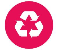 Recycling symbol of three arrows forming a triangle. Waste is a big part of any business and typically comes from fit-out construction, promotional materials, food and packaging.